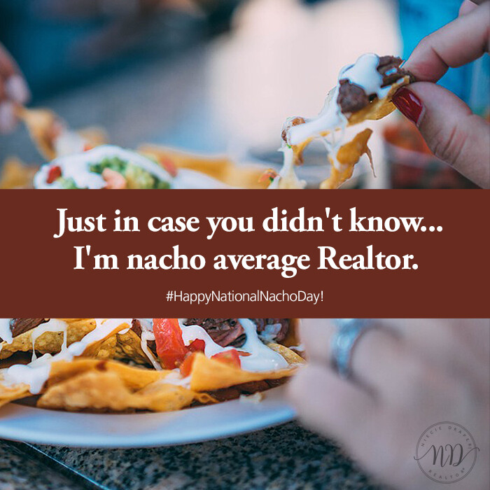 #callniecie #talktoniecie #inboxniecie #thehelpfulagent #houseexpert #housing #home #NationalNachosDay #NACHOAVERAGEREALTOR #realestatehumor #realtorlife #funpost #RealEstateFun #homebuyingwithflavor